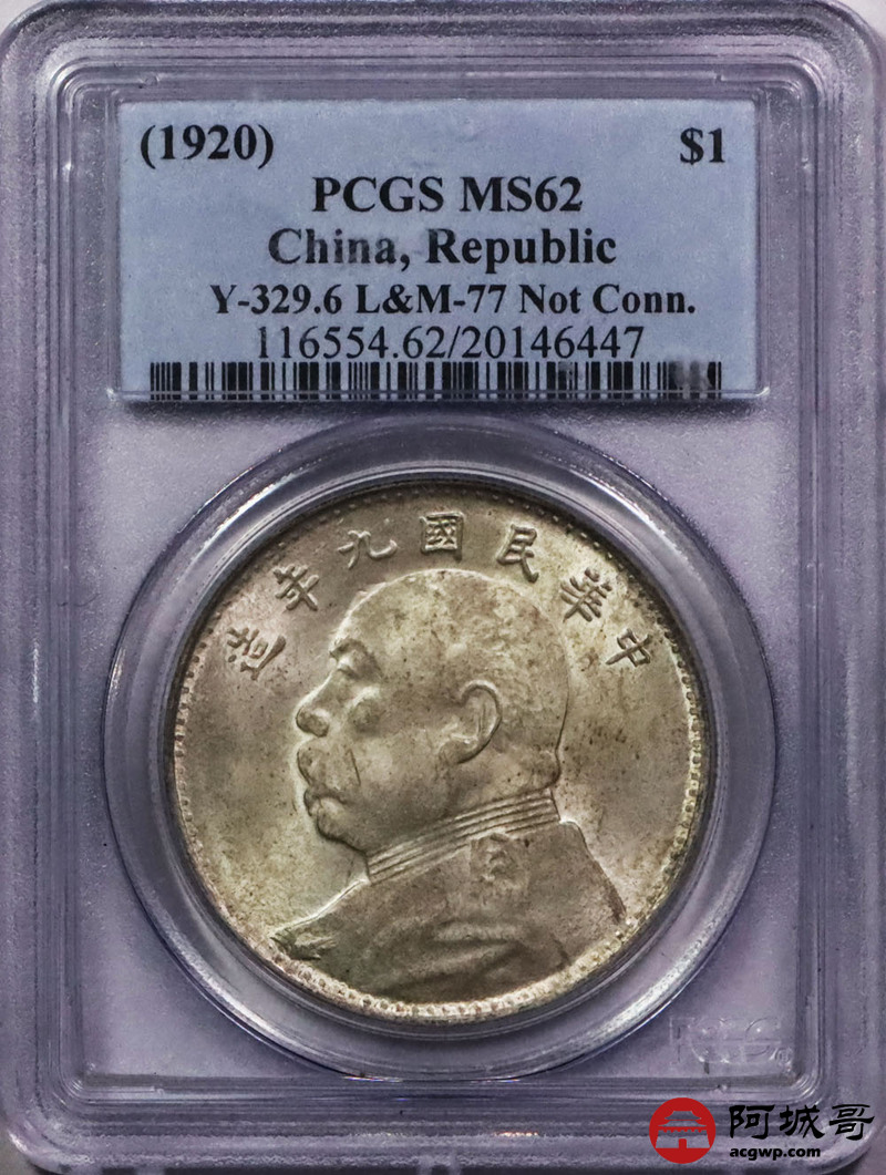 Lot:20 黄油原光九年大头壹圆 海南版 PCGS MS62