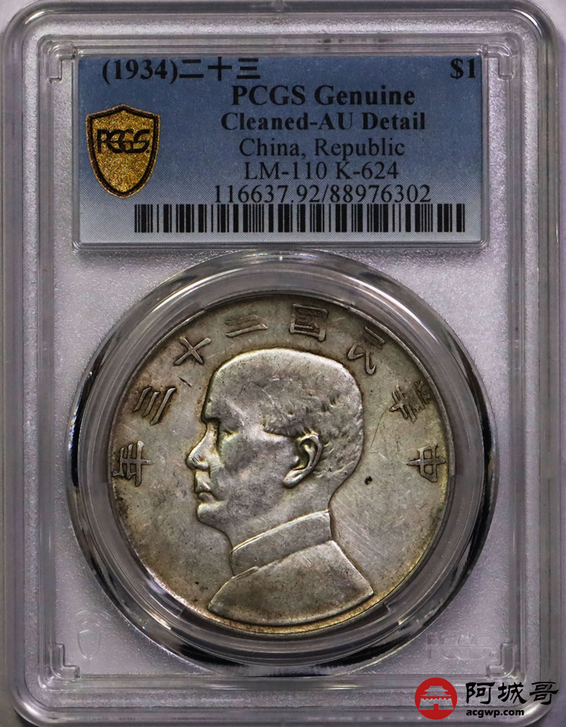 Lot:35 黄油光 民国23年船洋壹圆 PCGS AU