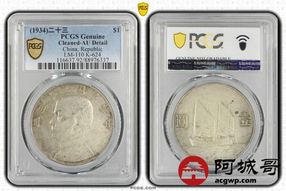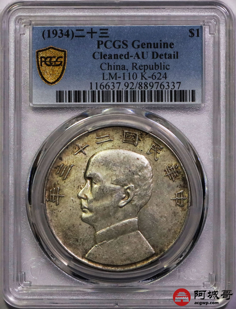 Lot:6 黄油光 民国23年船洋壹圆 PCGS AU