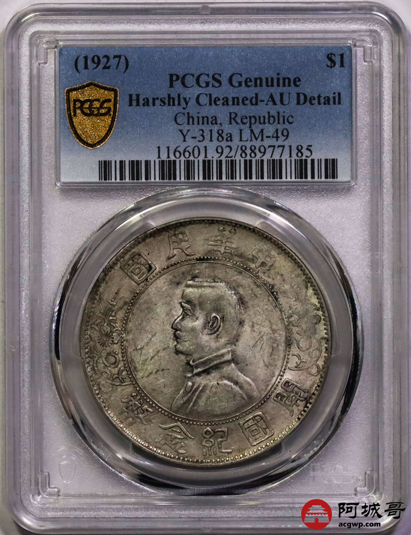 Lot:3 原味 底光 孙像小头壹元 PCGS AU