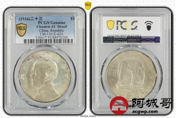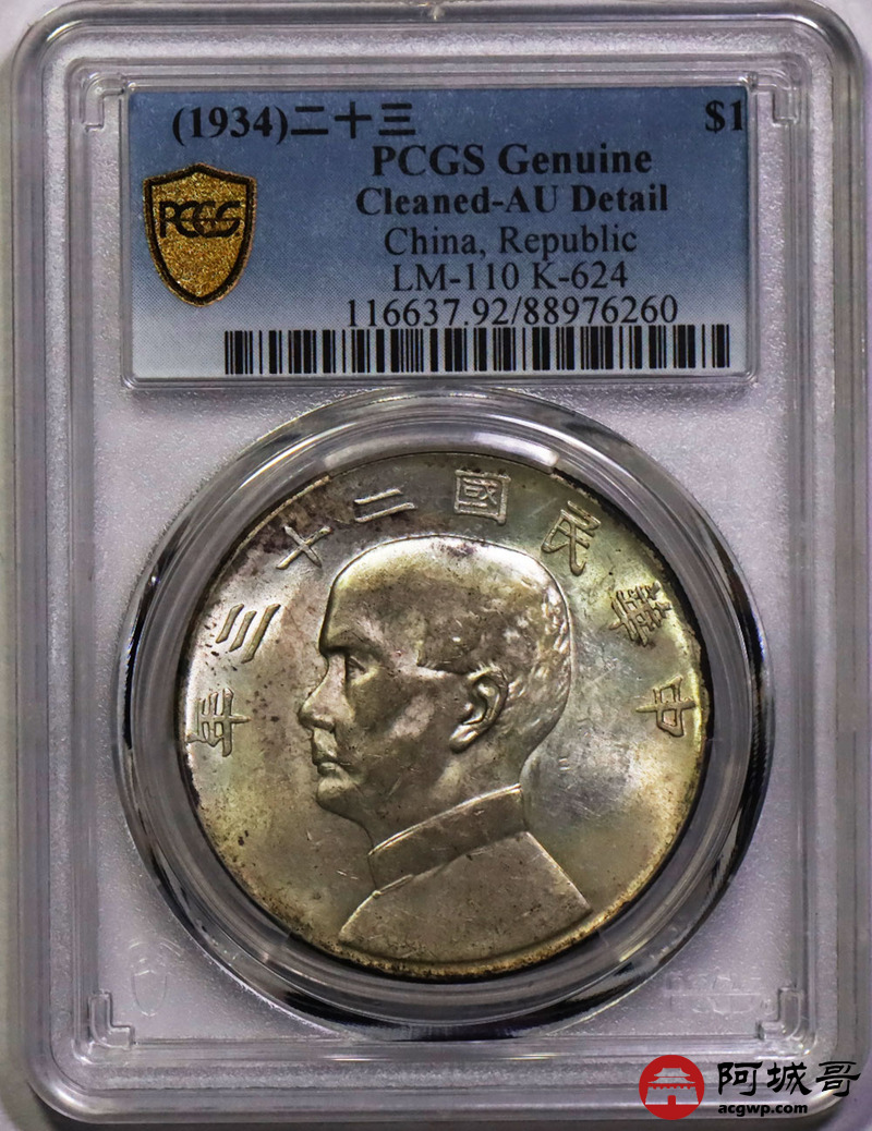 Lot:5 黄油光 民国23年船洋壹圆 PCGS AU