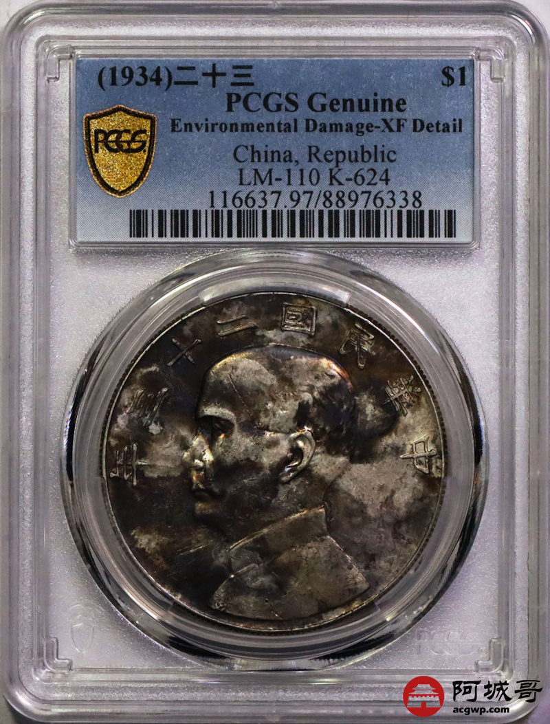 Lot:1 原味 五彩 二十三年船洋壹圆 PCGS XF