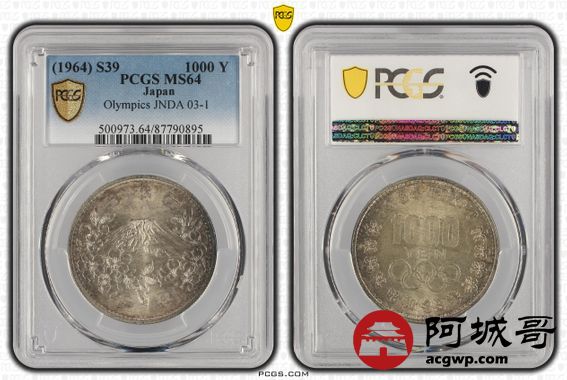 Lot:37 五彩日本 东京奥运会 纪念1000円 PCGS MS 64