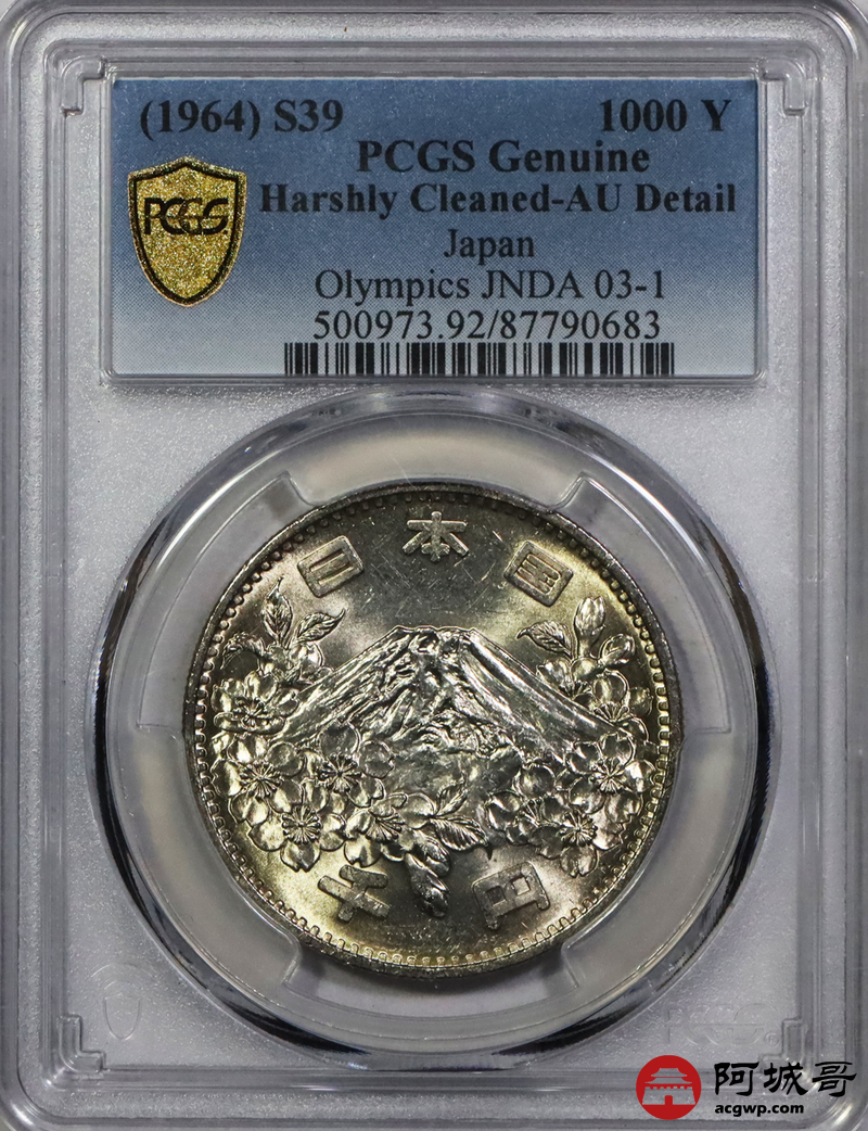 Lot:40 五彩日本 东京奥运会 纪念1000円 PCGS AU