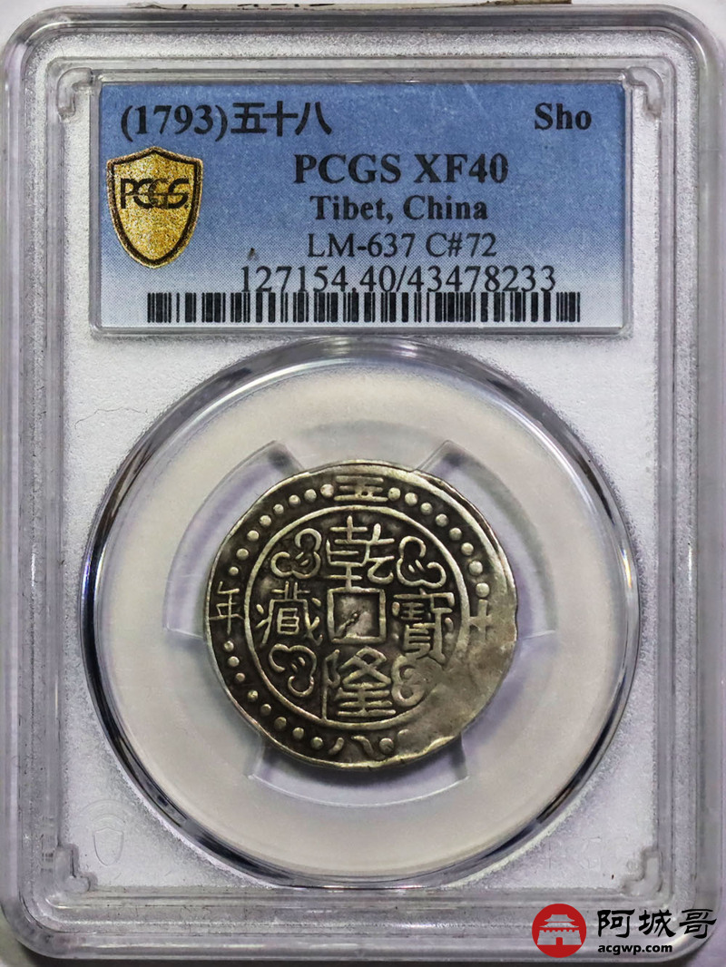 Lot:17 原味老包浆 乾隆五十八年宝藏 PCGS XF40