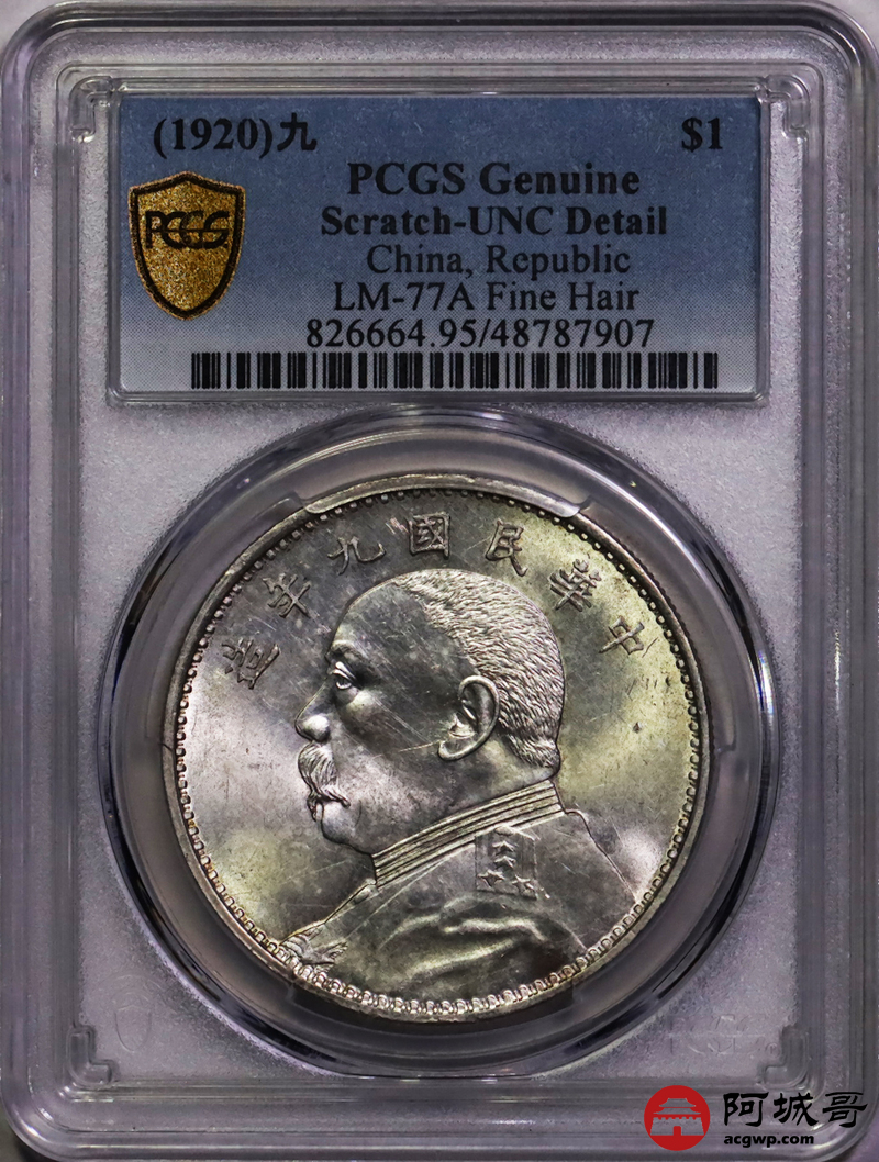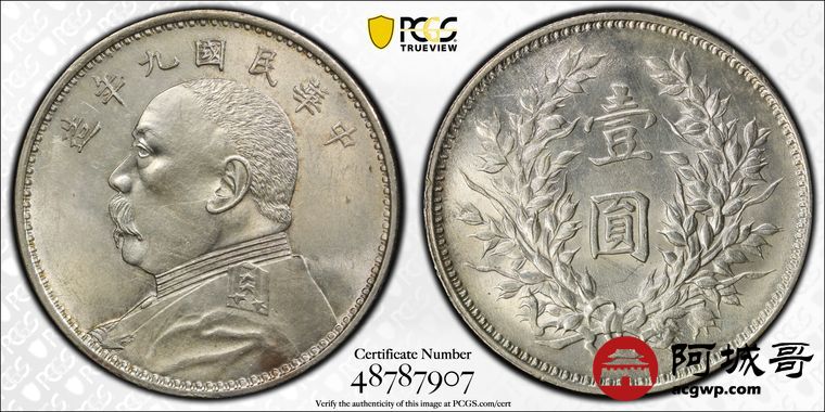 Lot:19 原光 民国九年精发大头壹圆 PCGS UNC