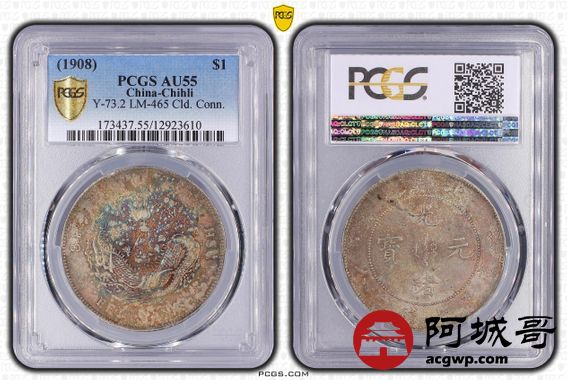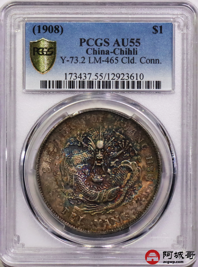 Lot:11 转光 五彩 北洋34年七钱二分 PCGS AU55