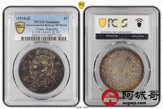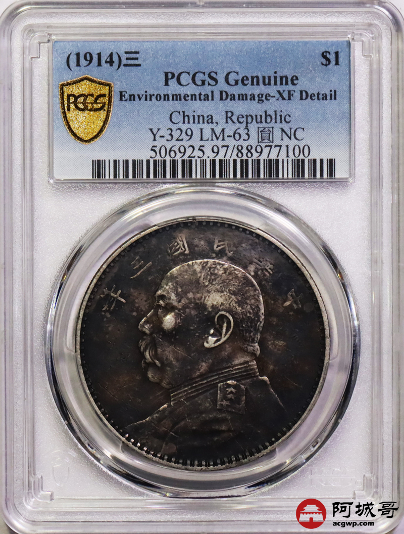 Lot:36 酱彩 民国三年大头壹元 PCGS XF