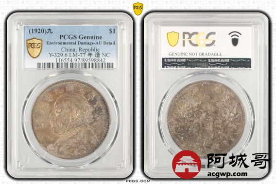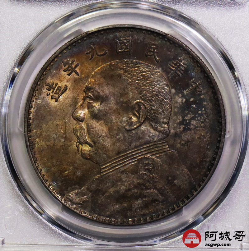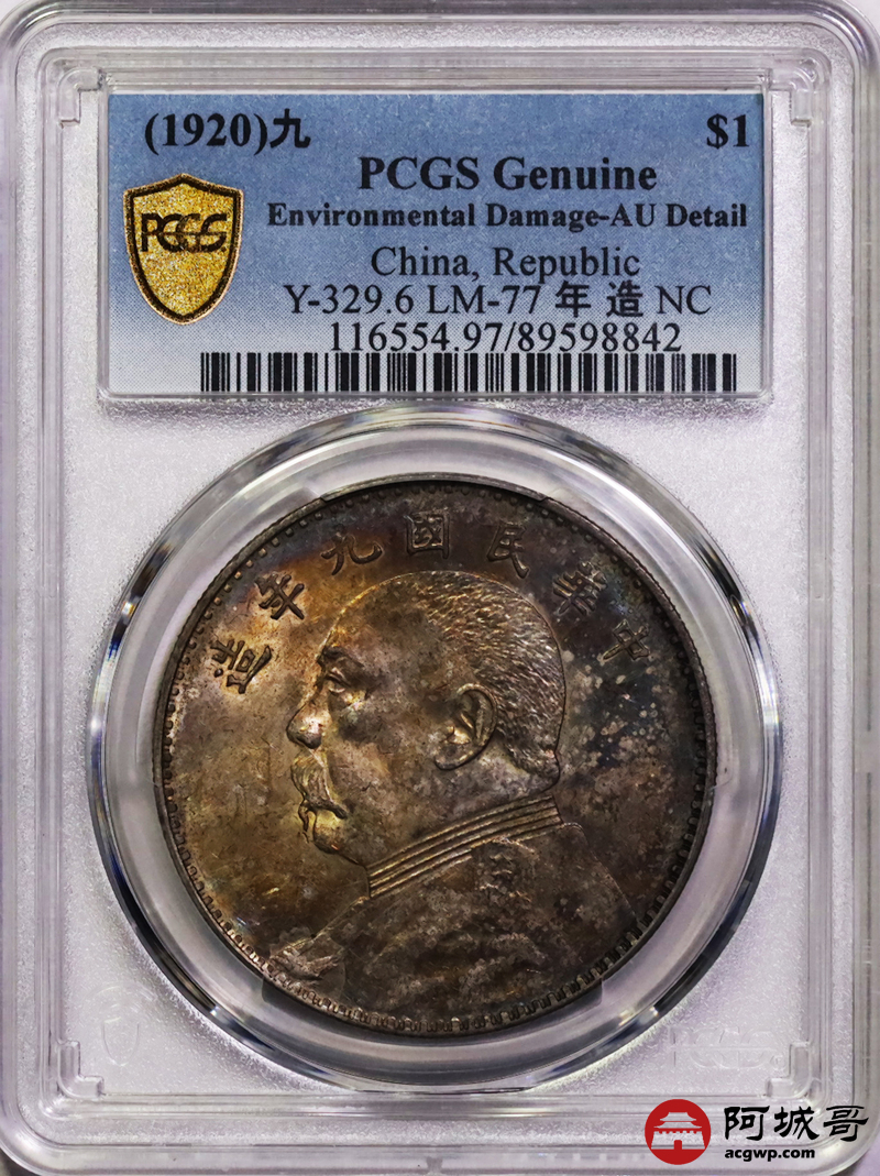 Lot:30 转光 五彩 九年大头壹元 PCGS AU