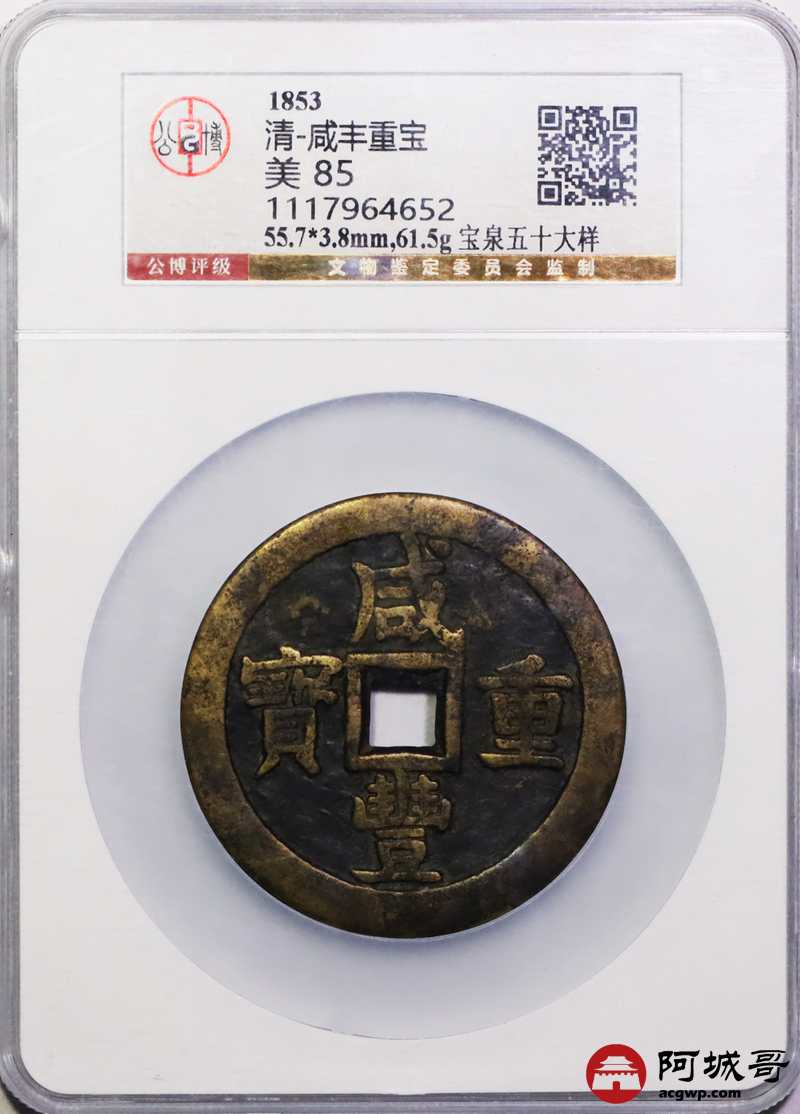 Lot:32 清-咸丰重宝 宝泉五十大样 公博 美85