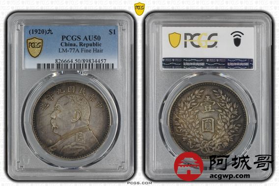 Lot:15 原味 酱彩老包浆 九年精发壹圆 PCGS AU50