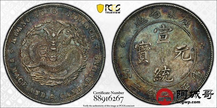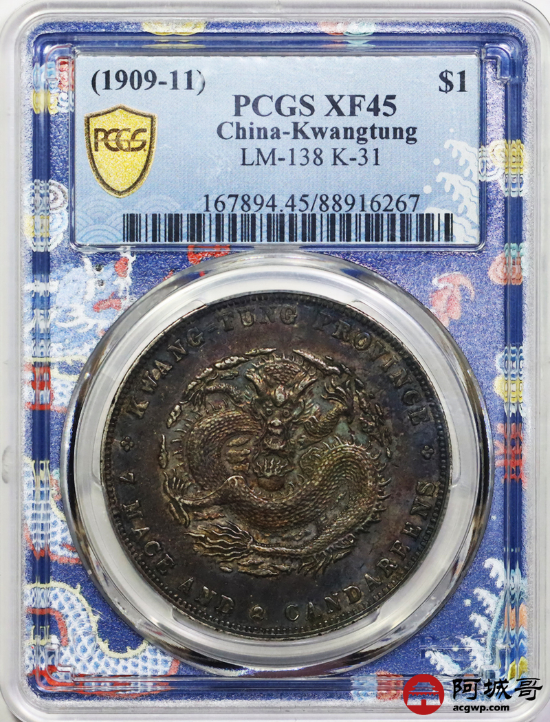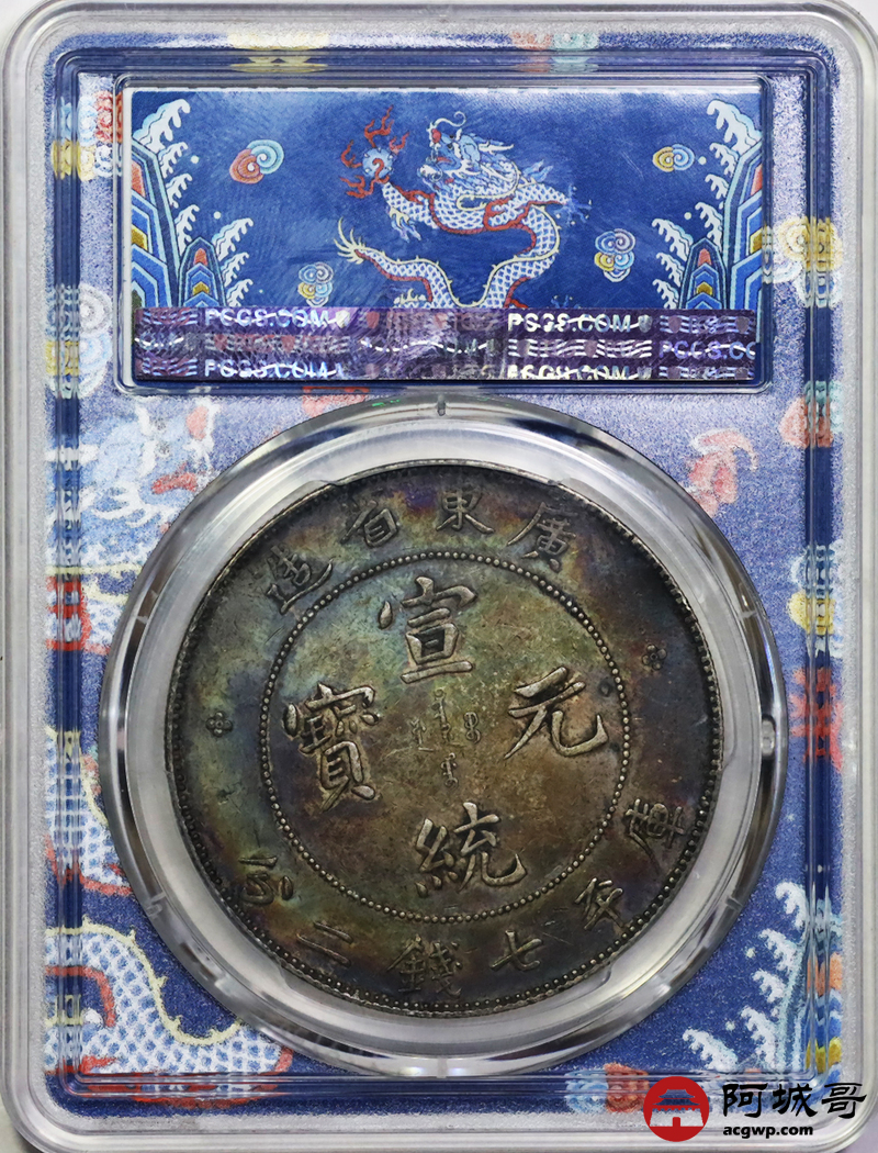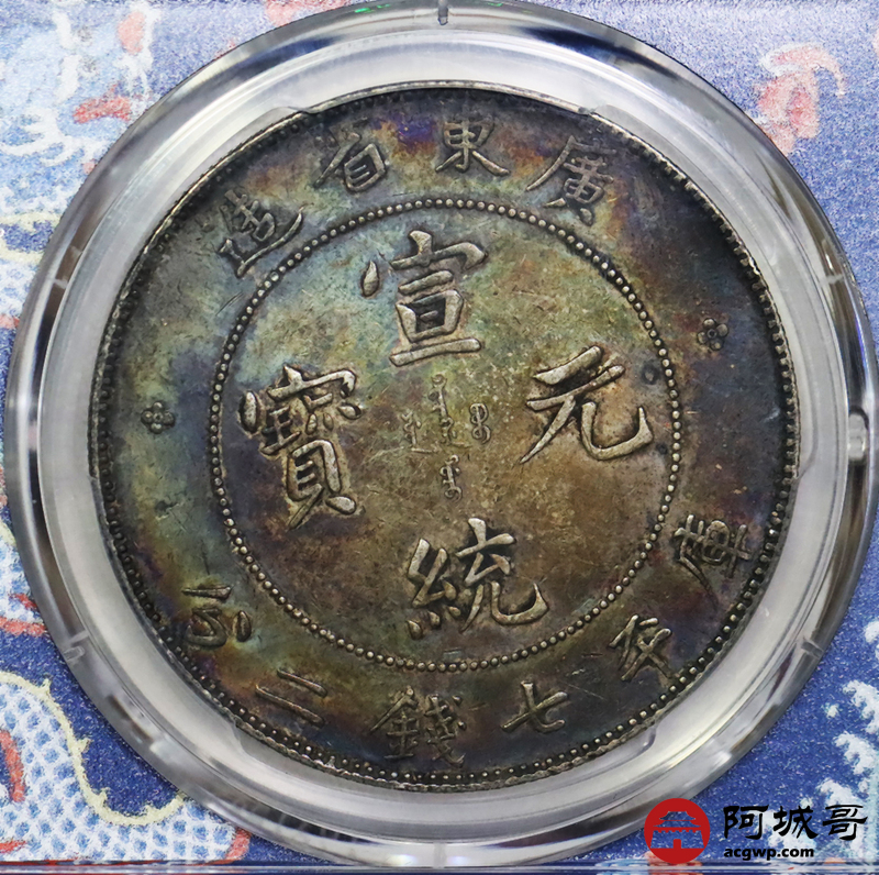 Lot:9 深打双面重酱老五彩 广东宣统七钱二分 PCGS XF45