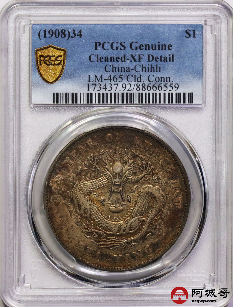 Lot:3 五彩深打 北洋34七钱二分 PCGS XF