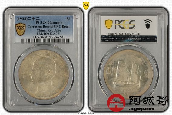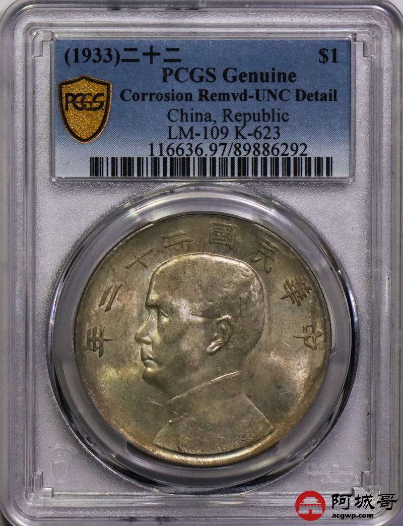 Lot:1 原光 二十二年船洋 PCGS UNC