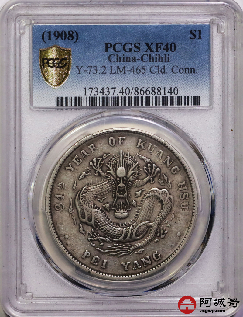 Lot:6 原味老包浆 北洋34七钱二分 PCGS XF40
