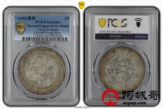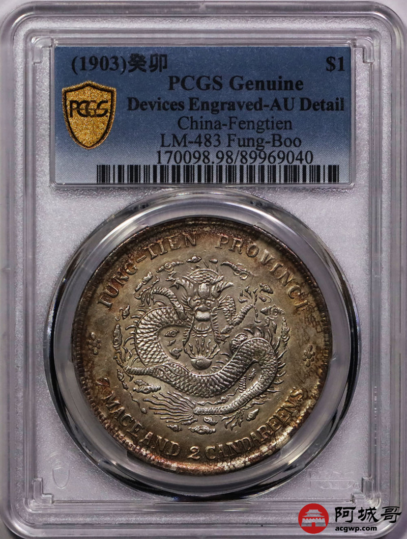 Lot:20 深打黄油彩 爆龙鳞 奉天癸卯七钱二分 奉宝 PCGS AU