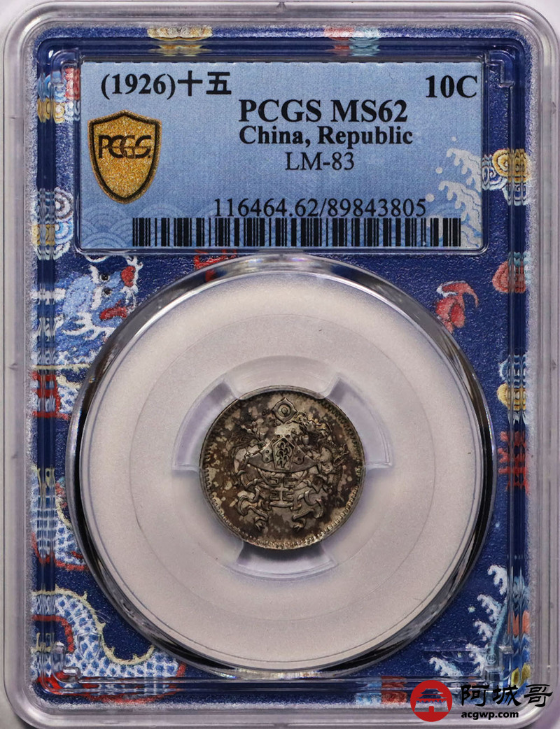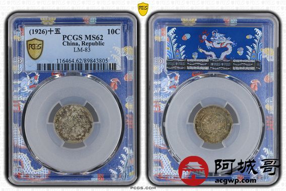 Lot:16 原光 酱彩深打 民国十五年龙凤壹角 PCGS MS62