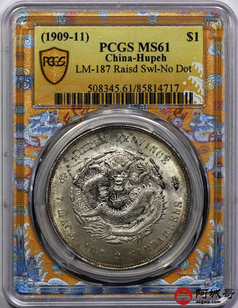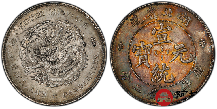 Lot:14 黄油原光 卷尾五彩 湖北宣统七钱二分 PCGS MS61