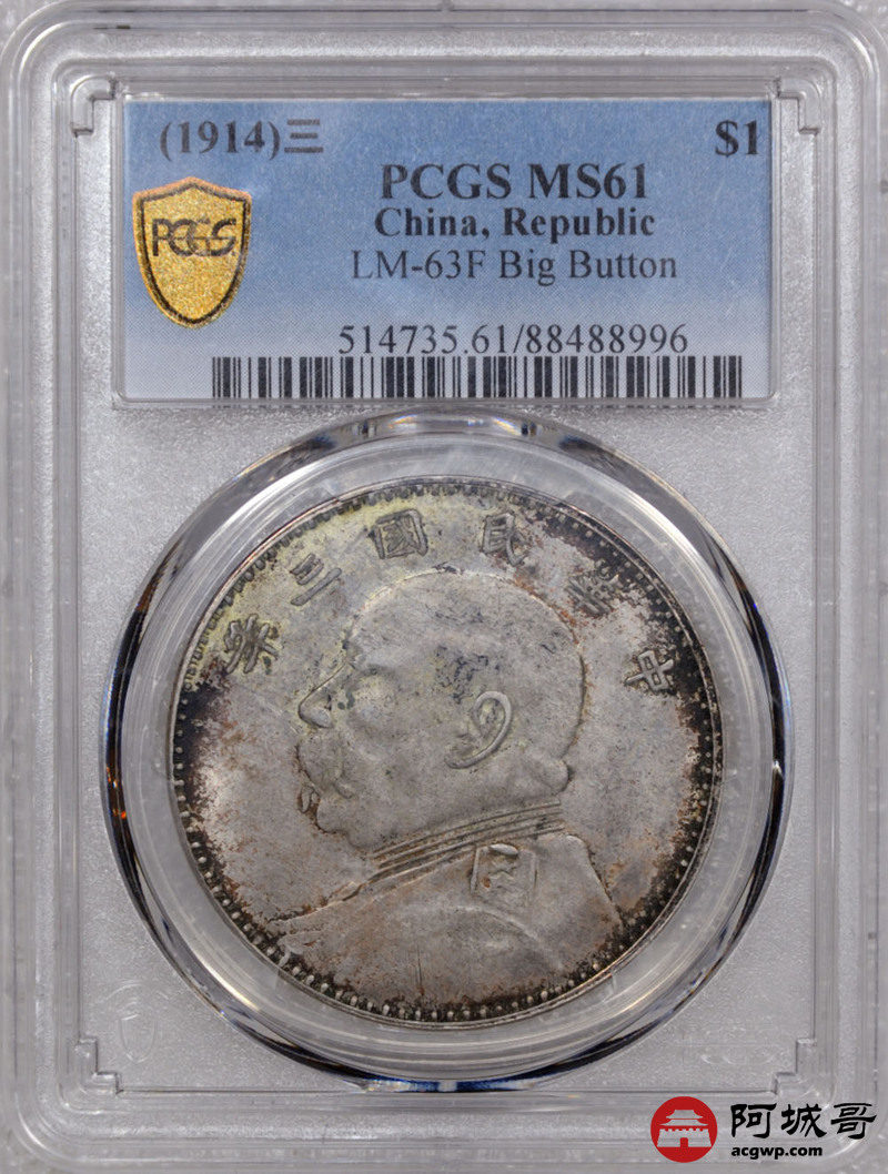Lot:19 原光 酱彩包浆 三年大头 山东大扣 PCGS MS61