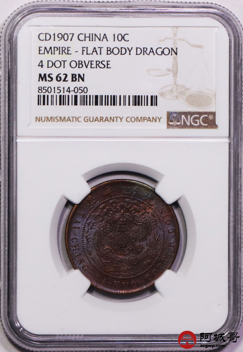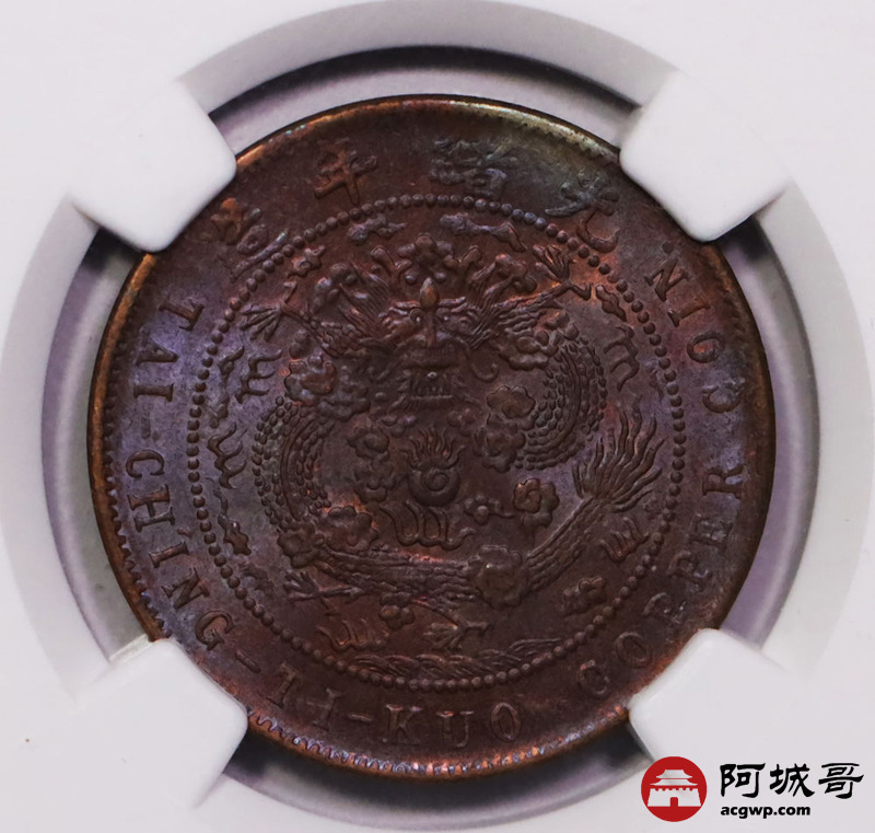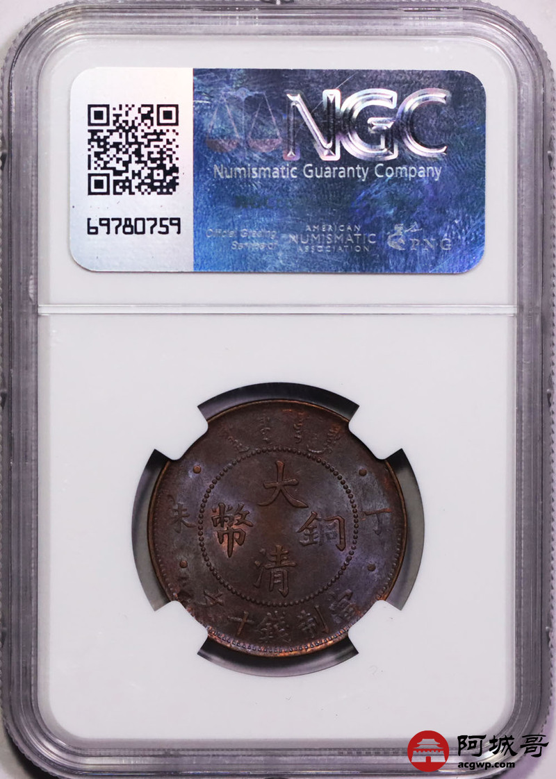 Lot:34 原光 大清丁未十文铜币 NGC MS62BN