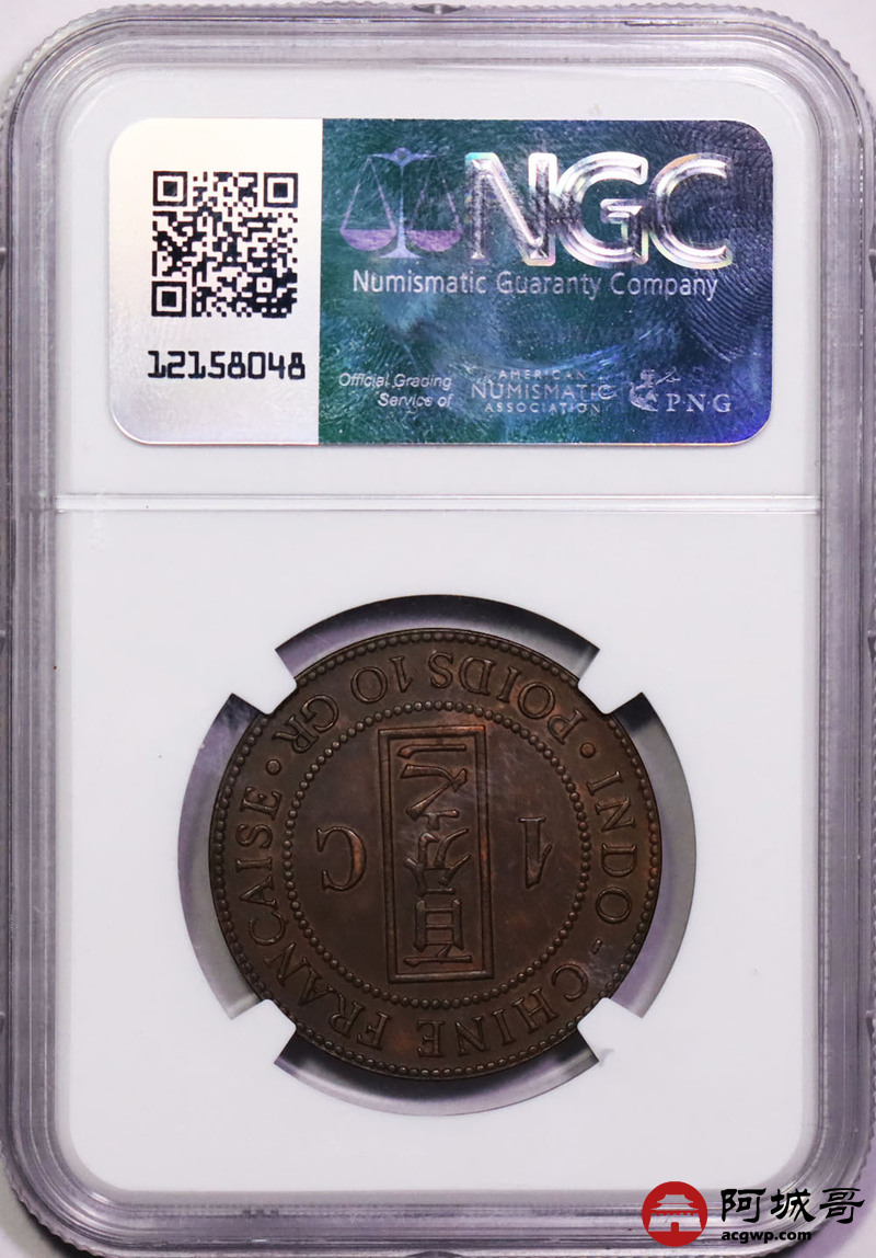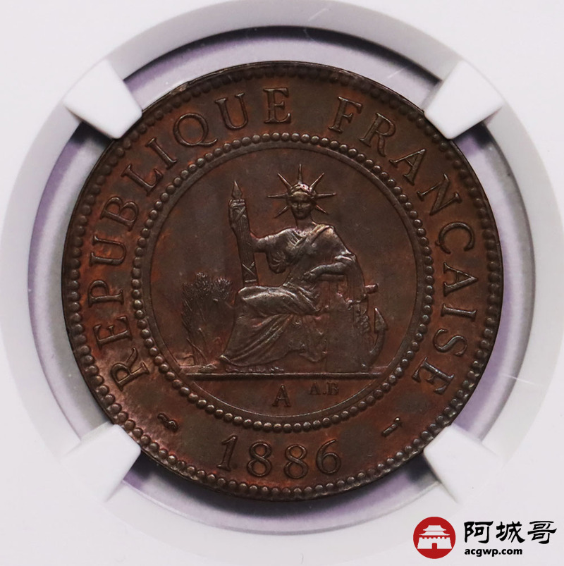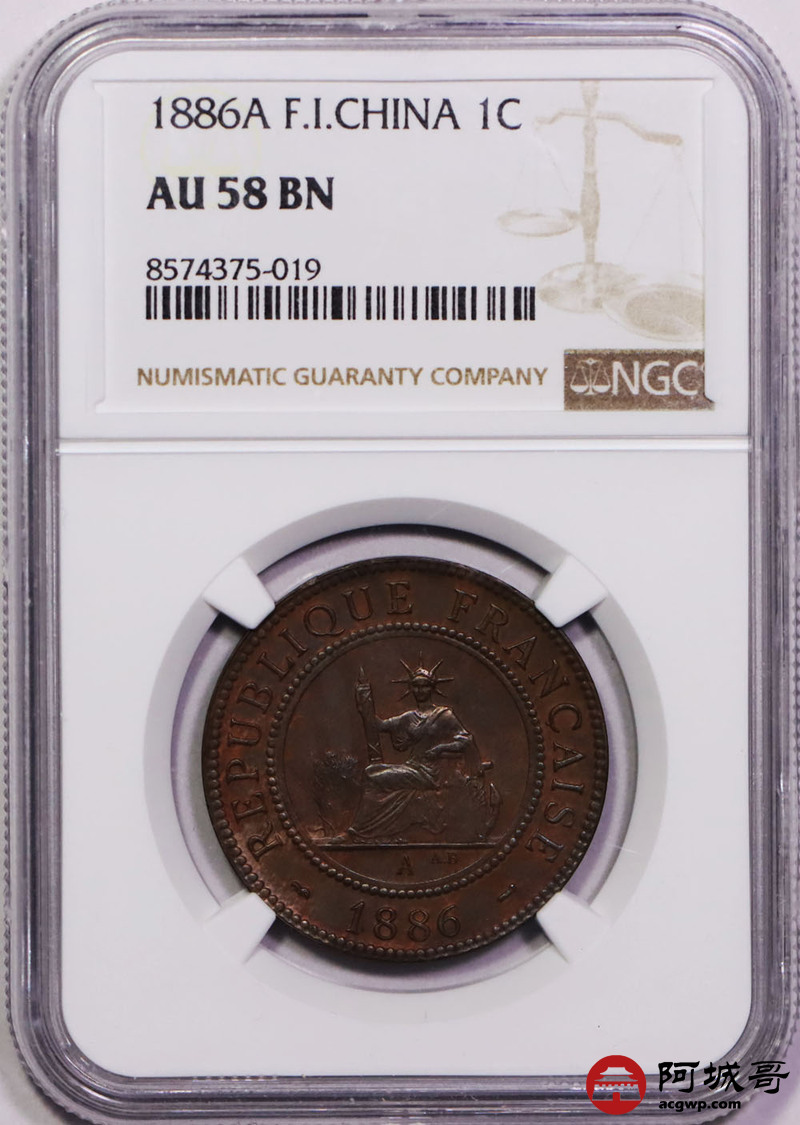 Lot:30 1886A 坐洋百分之一铜币 NGC AU58BN
