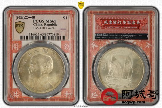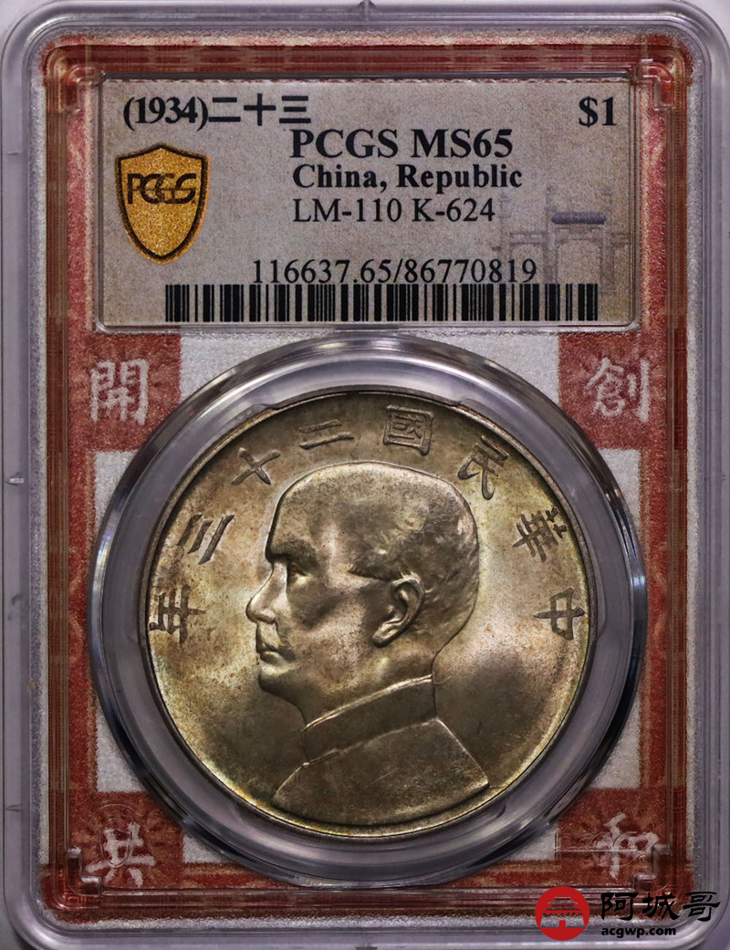 Lot:4 黄油原光 二十三年船洋 PCGS MS65