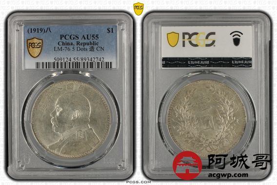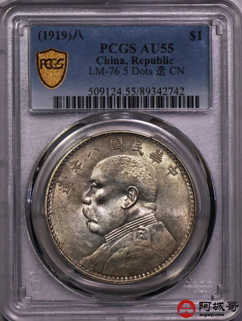Lot:25 黄油深打 八年大头 连口造 空心叶 PCGS AU55