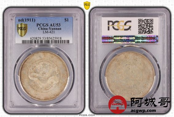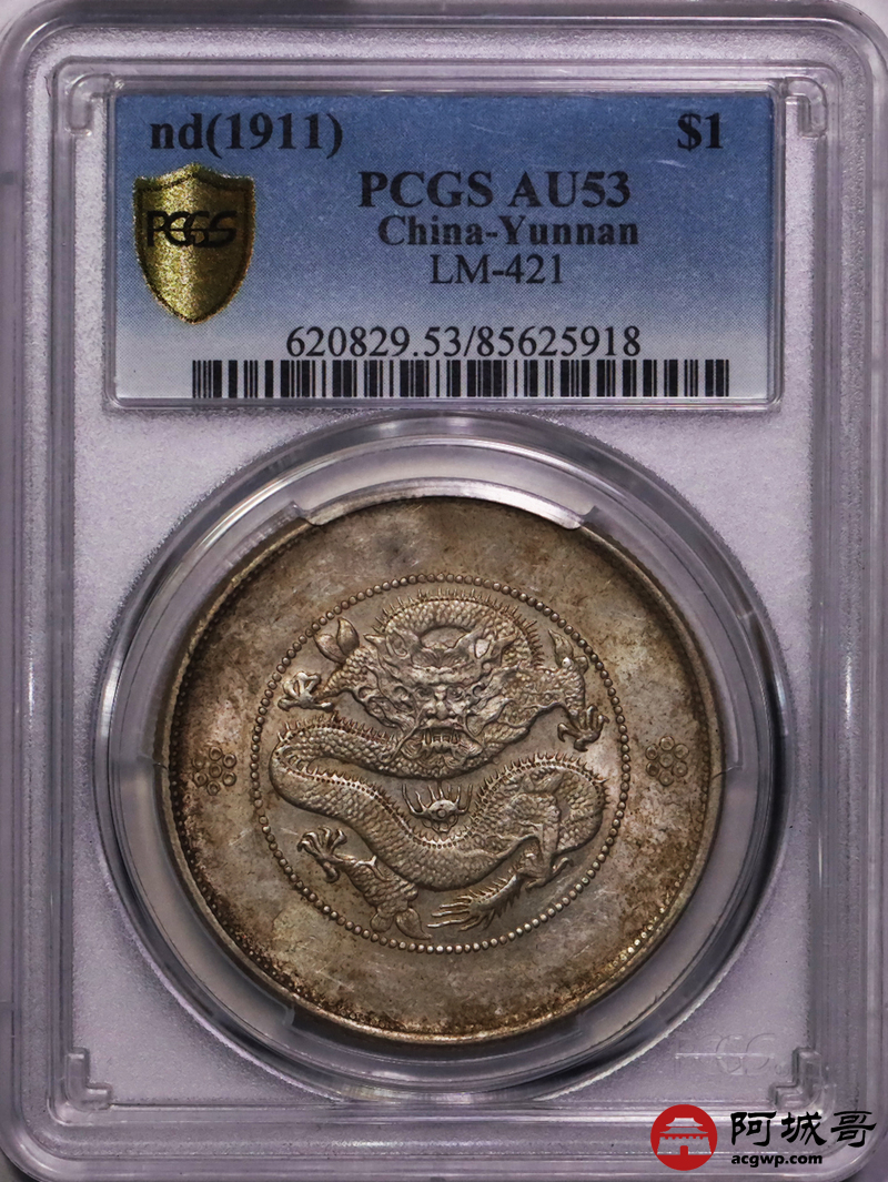 Lot:23 深打 黄油底板 云南大困龙七钱二分 PCGS AU53