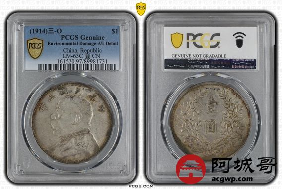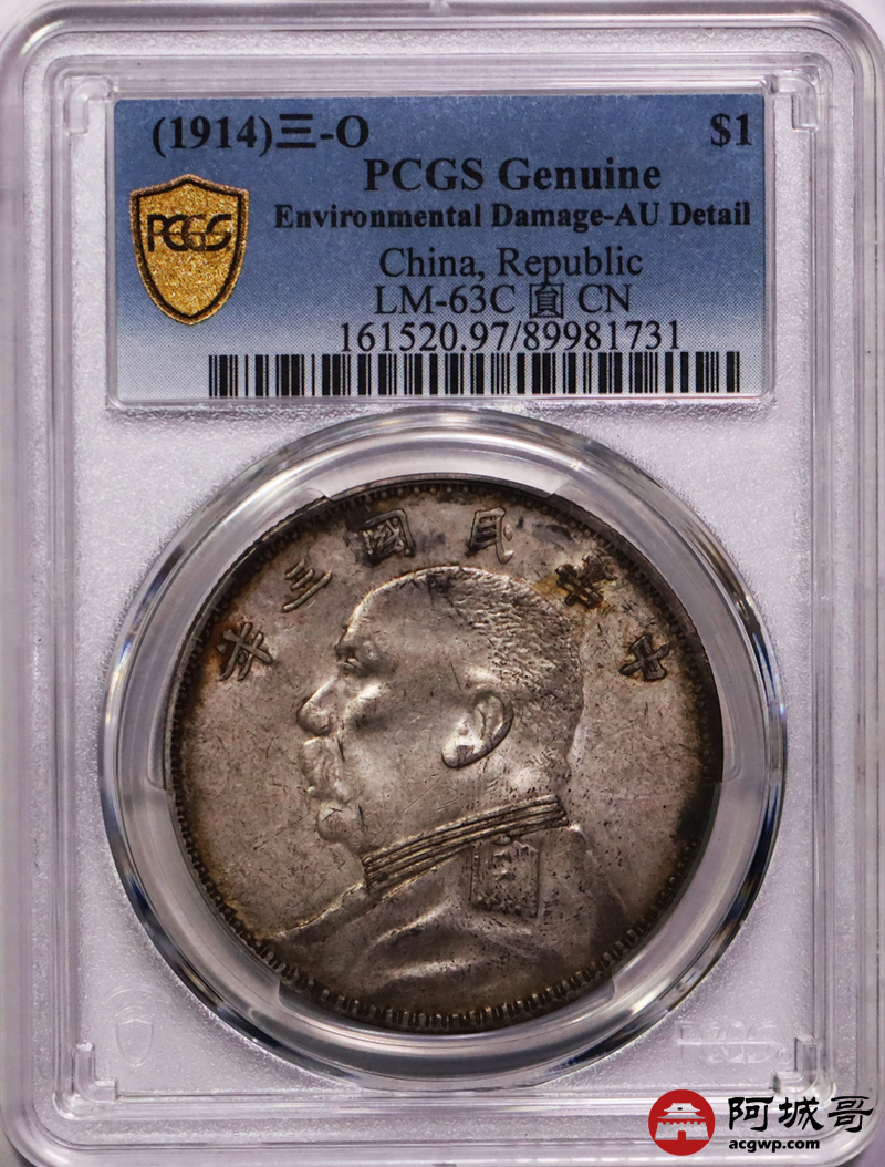 Lot:27 原味老包浆 三年大头O版三角圆 PCGS AU