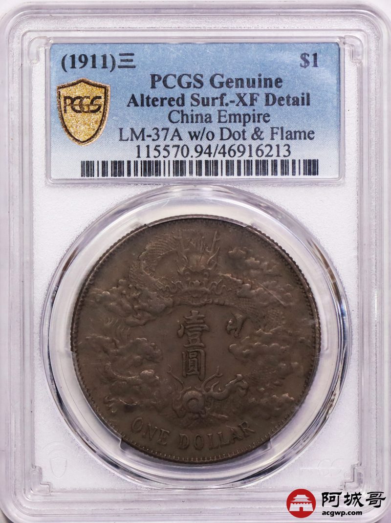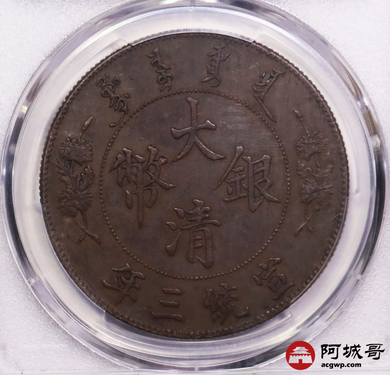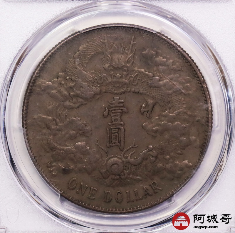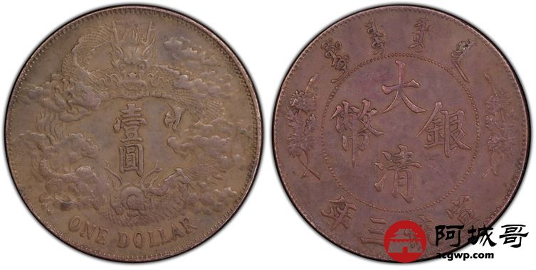 Lot:2 大清宣统三年壹元 酱彩包浆 PCGS XF