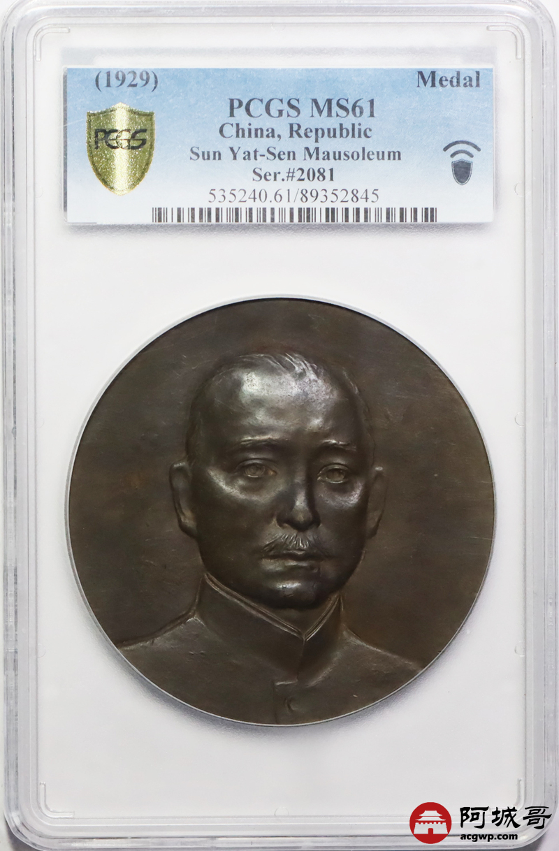 Lot:24 a1929孙中山奉安大典纪念章 PCGS MS61