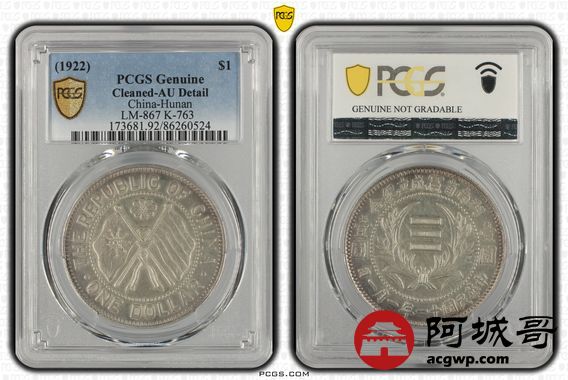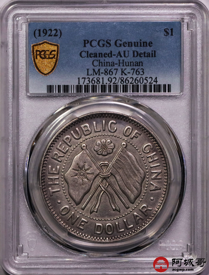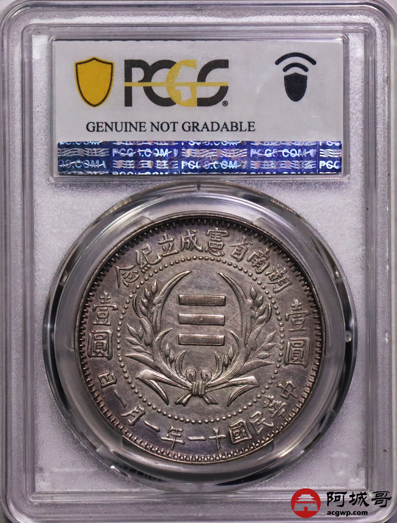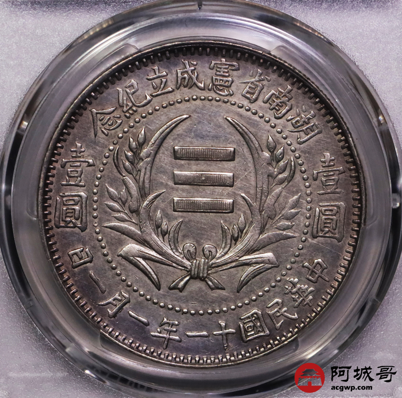 Lot:12 深打粉彩底板 湖南省宪壹圆 PCGS AU