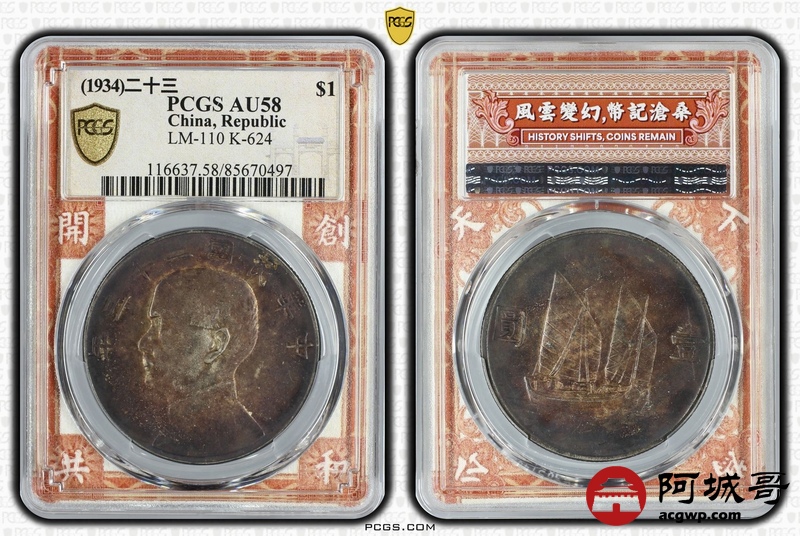 Lot:6 a二十三年船洋 传世味道双面入骨酱红彩老包浆状态一流非常漂亮PCGS AU58