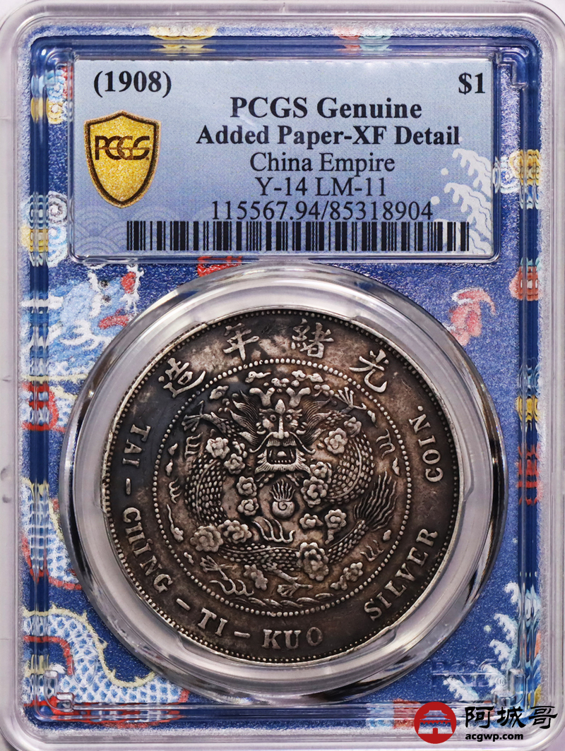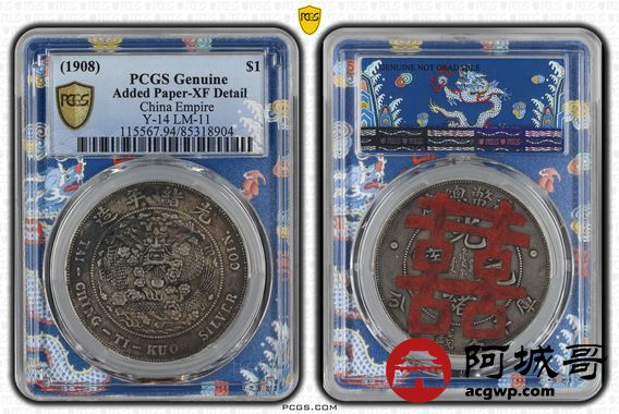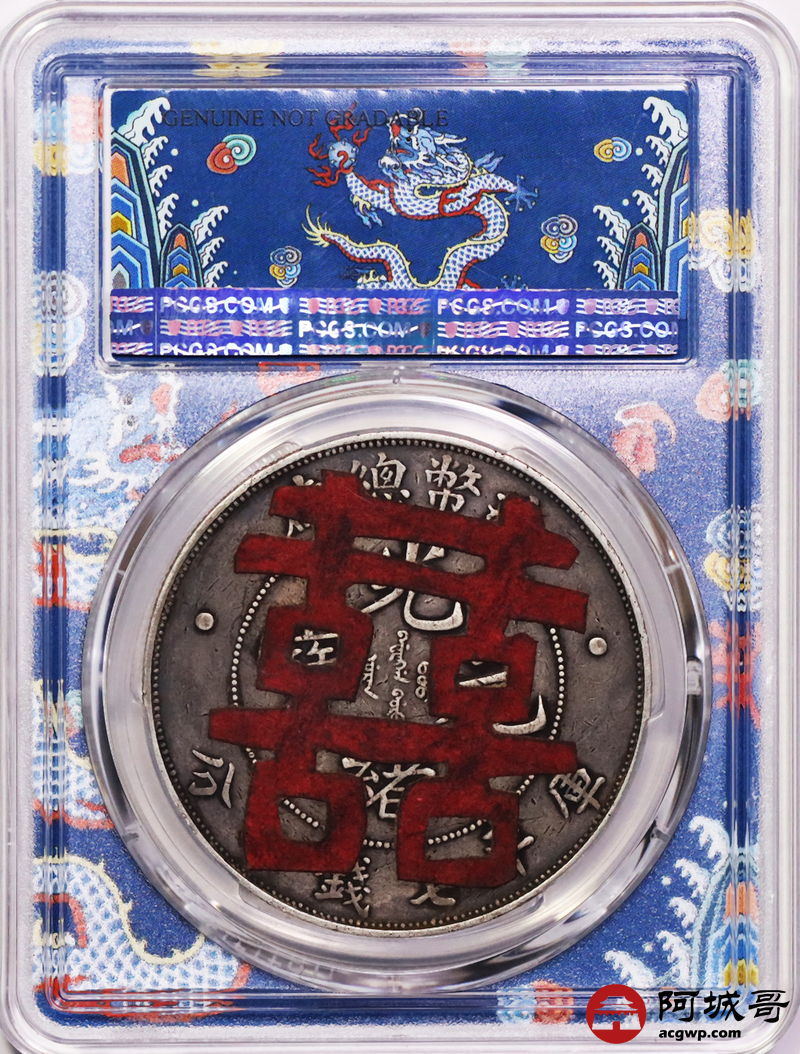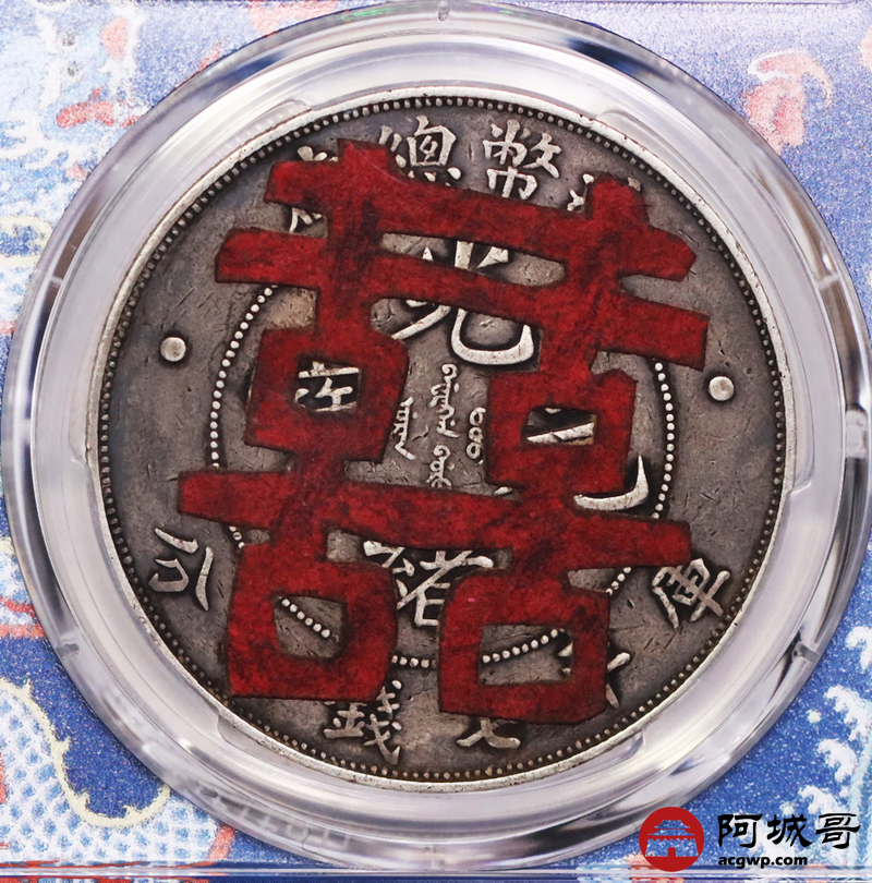 Lot:8 酱彩 深打 造币总厂七钱二分 双囍 PCGS XF