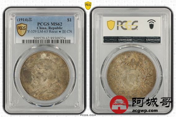 Lot:30 原光黄油五彩 三年大头三角圆 PCGS MS62