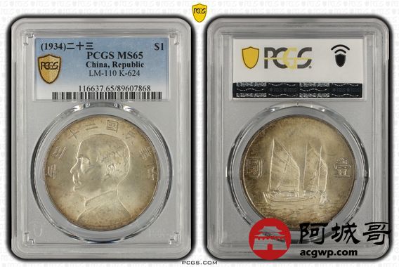Lot:19 原光 黄油彩 二十三年船洋 PCGS MS65