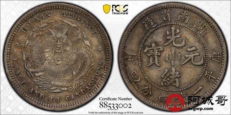 Lot:18 原味 深打 老包浆 湖南光绪一钱四分四厘 PCGS XF45