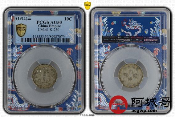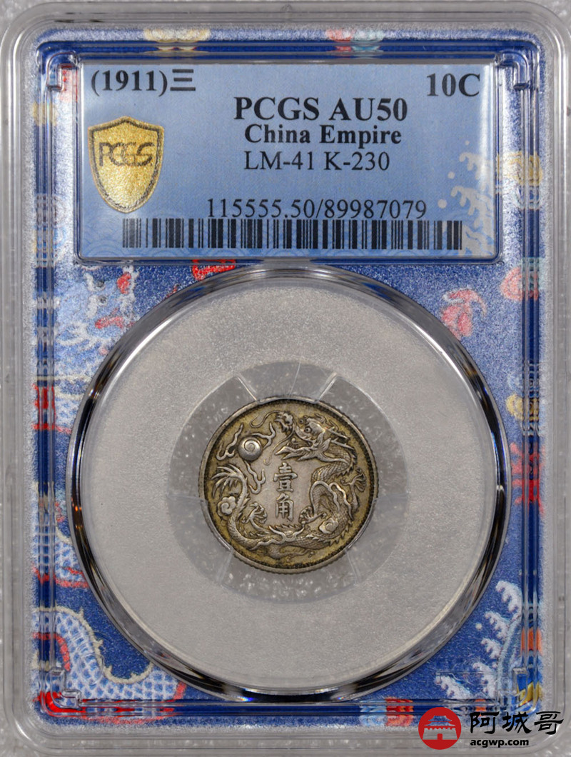 Lot:14 原味深打 大清立龙壹角 PCGS AU50