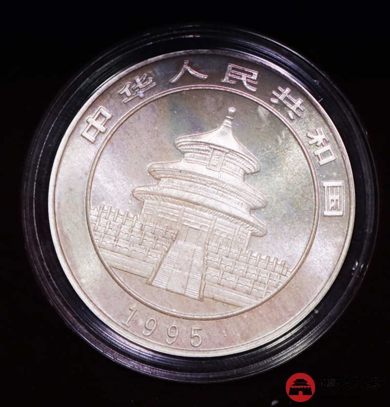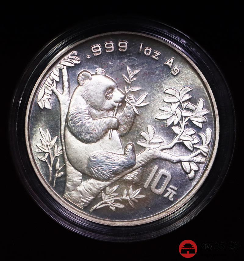 Lot:40 1995年熊猫银币一枚 币有氧化 带盒无证