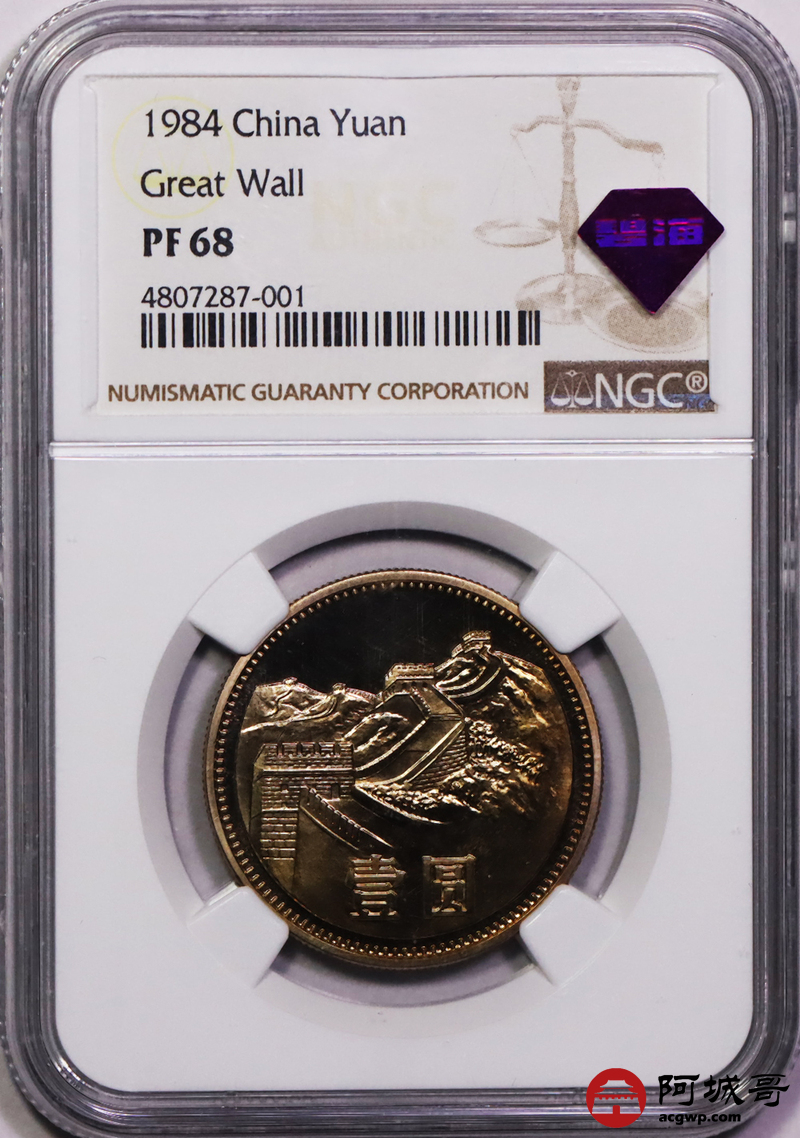 Lot:25 1984年长城壹圆精致币 NGC PF68 碧海标