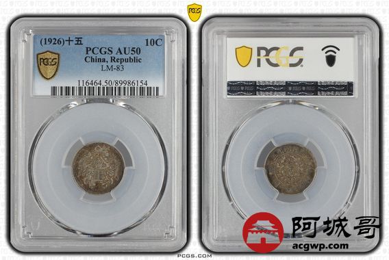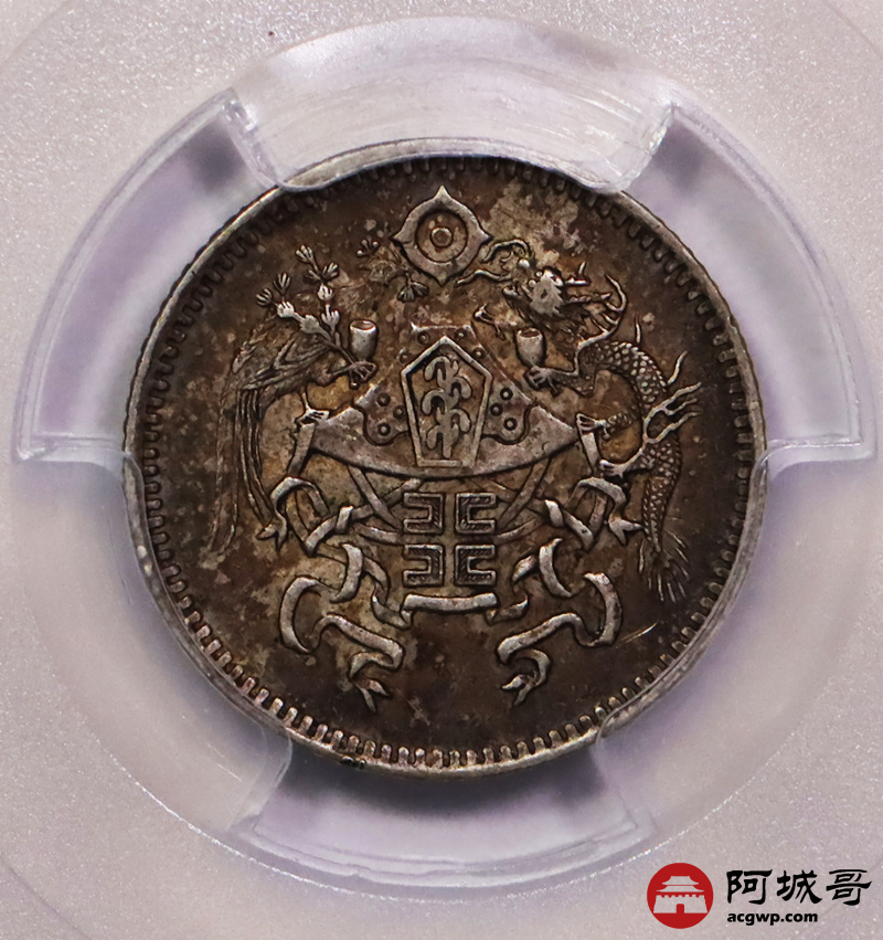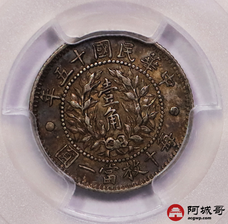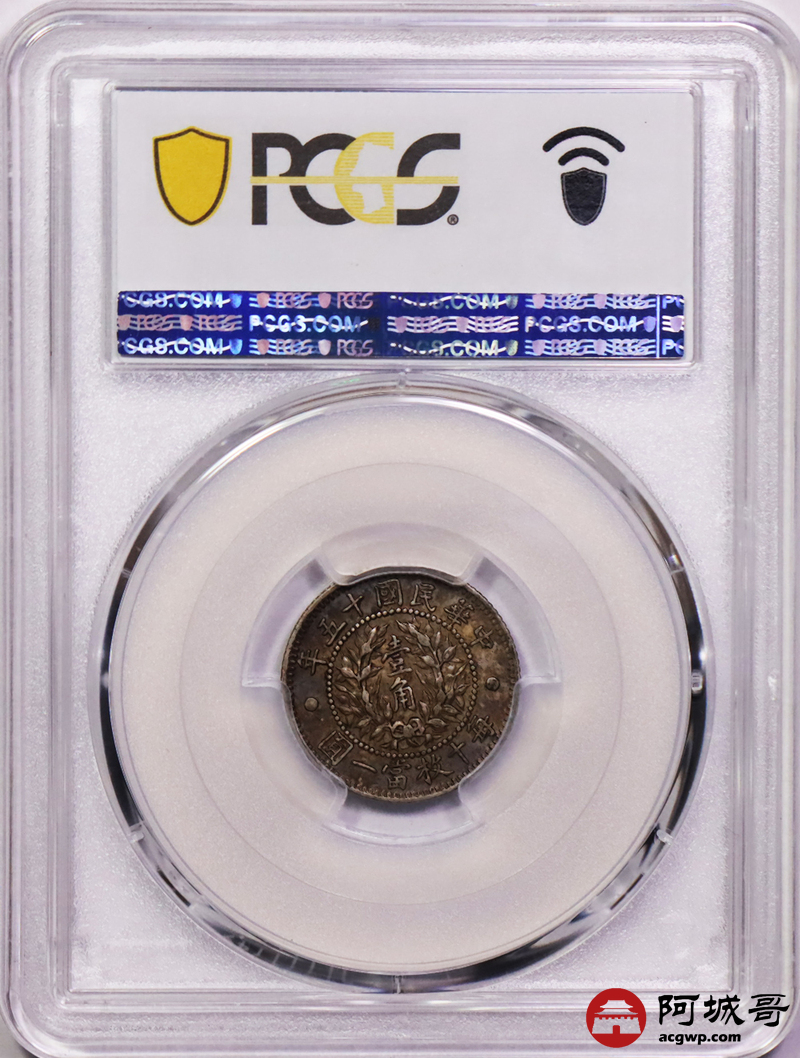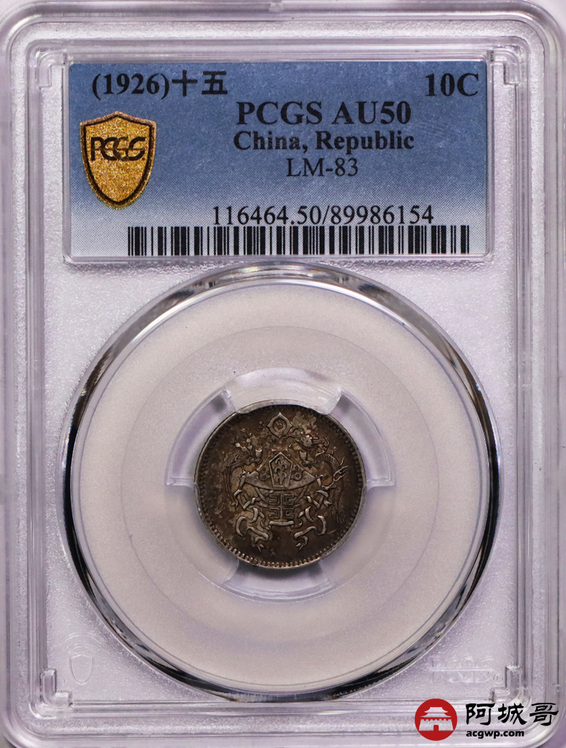 Lot:13 深打 酱彩 民国十五年龙凤壹角 PCGS AU50