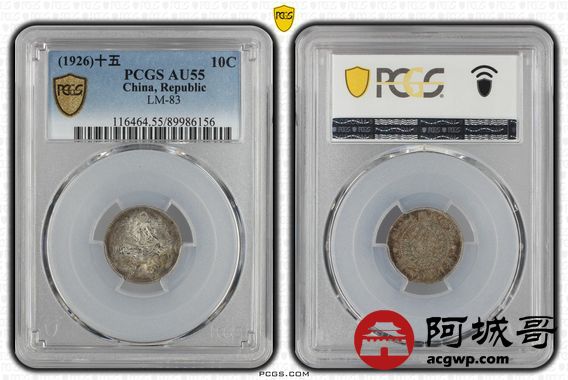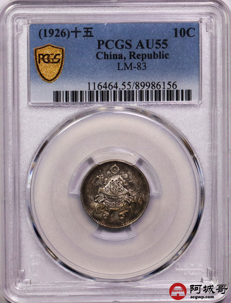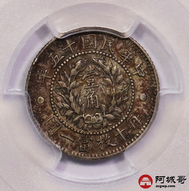 Lot:11 酱彩 底光 民国十五年龙凤壹角 PCGS AU55