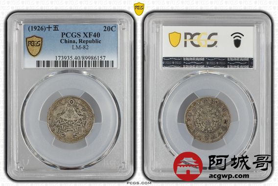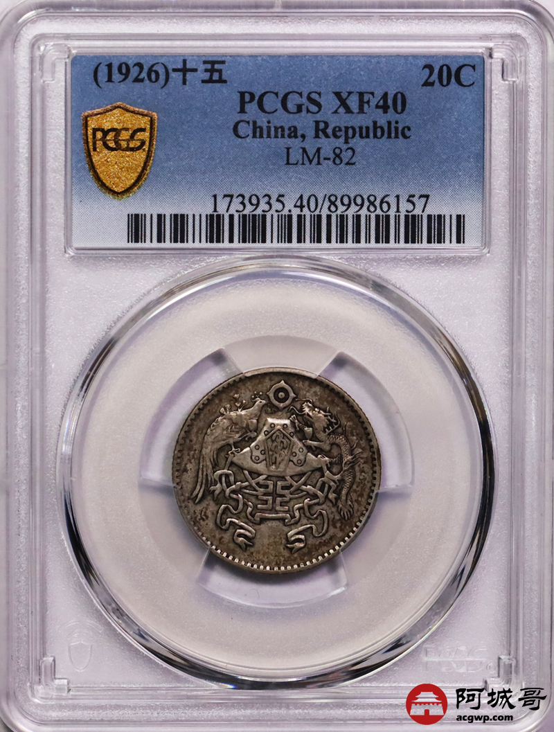 Lot:14 原味老包浆 民国十五年龙凤贰角 PCGS XF40