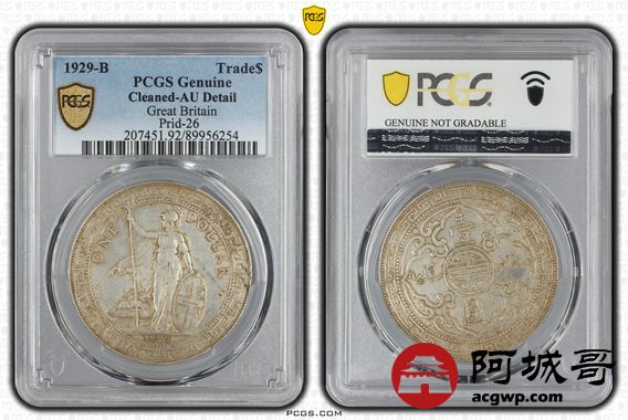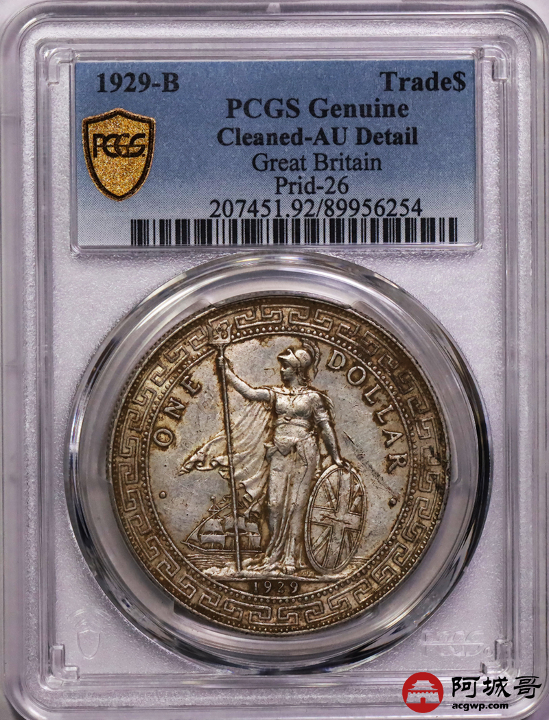 Lot:42 原味 黄油底光1929B站洋壹圆 PCGS AU