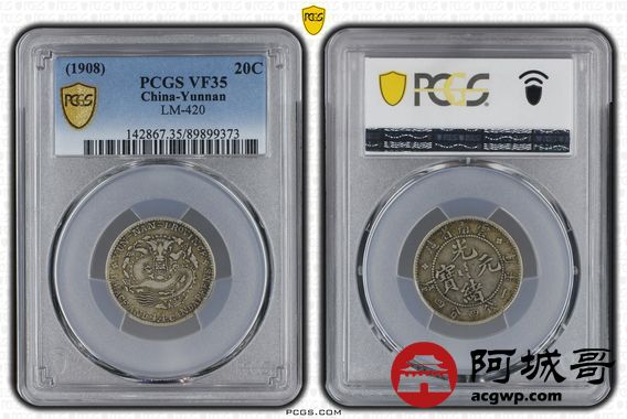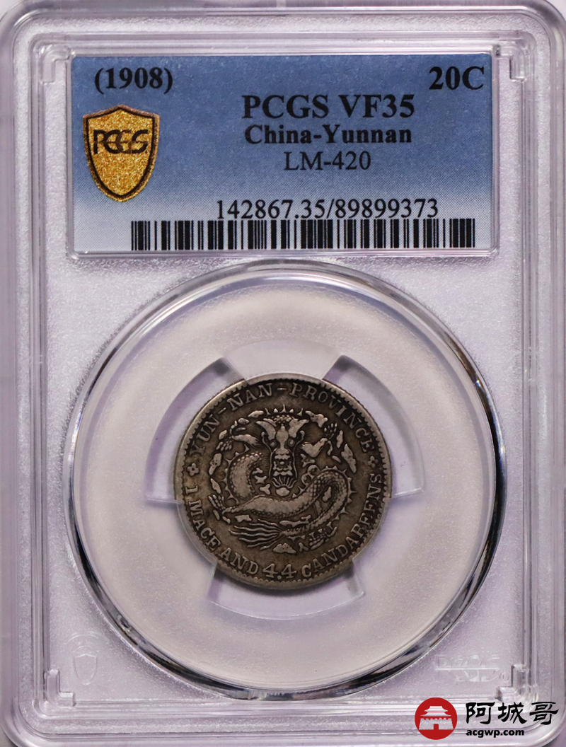 Lot:23 原味老包浆 老云南光绪一钱四分四厘 PCGS VF35
