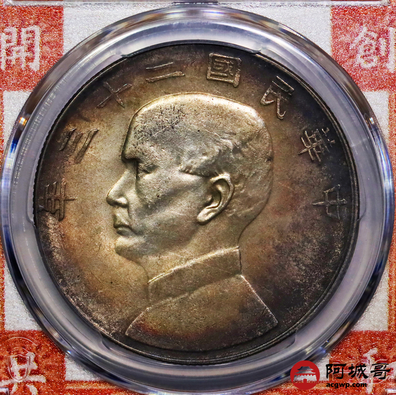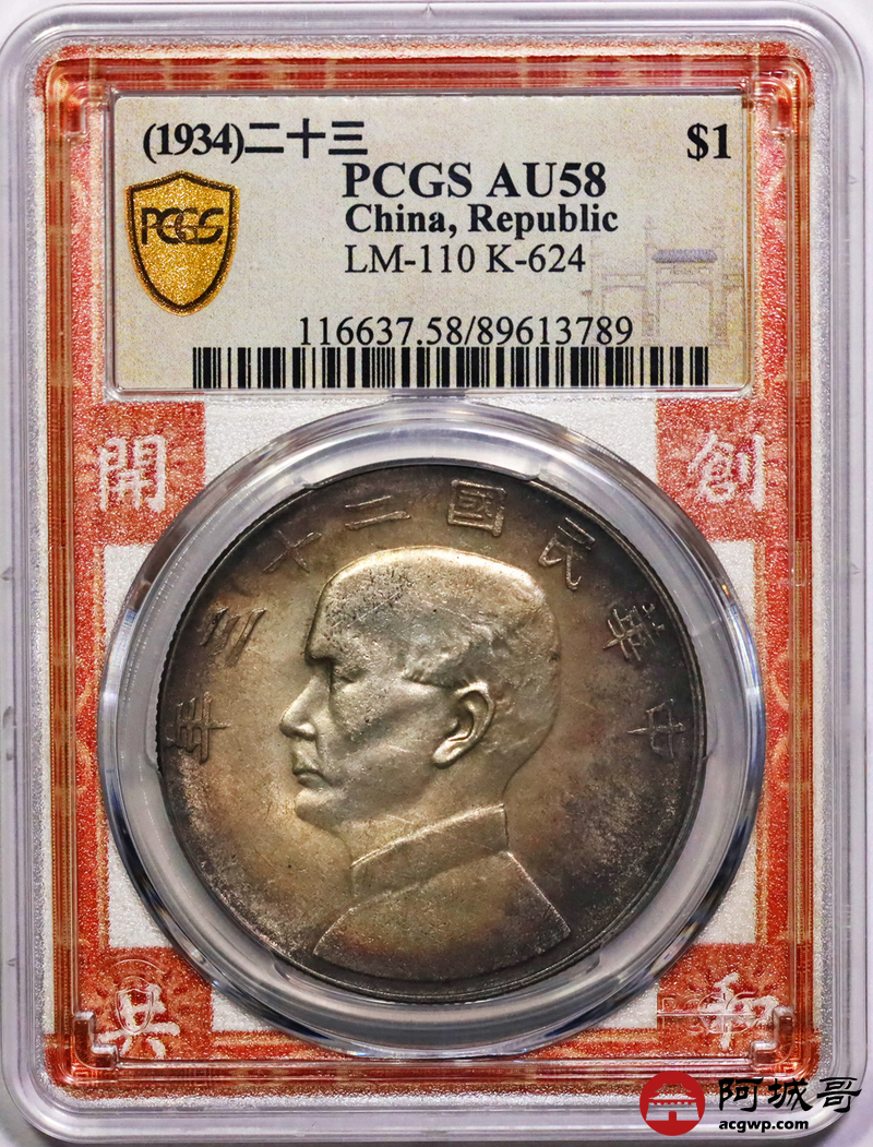 Lot:8 a二十三年双面老五彩包浆转光状态PCGS AU58