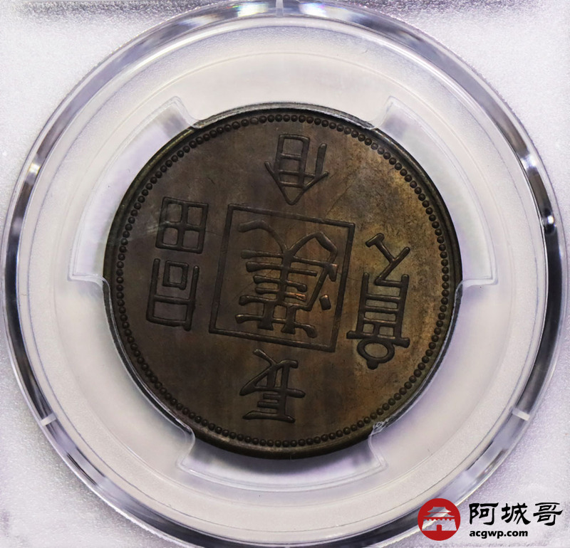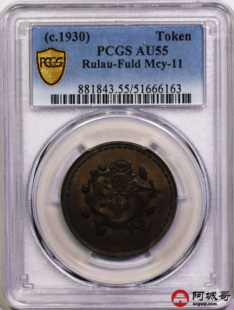Lot:15 民国1930年“长命富贵”中心“汉”飞龙铜币 PCGS AU55龙铜币