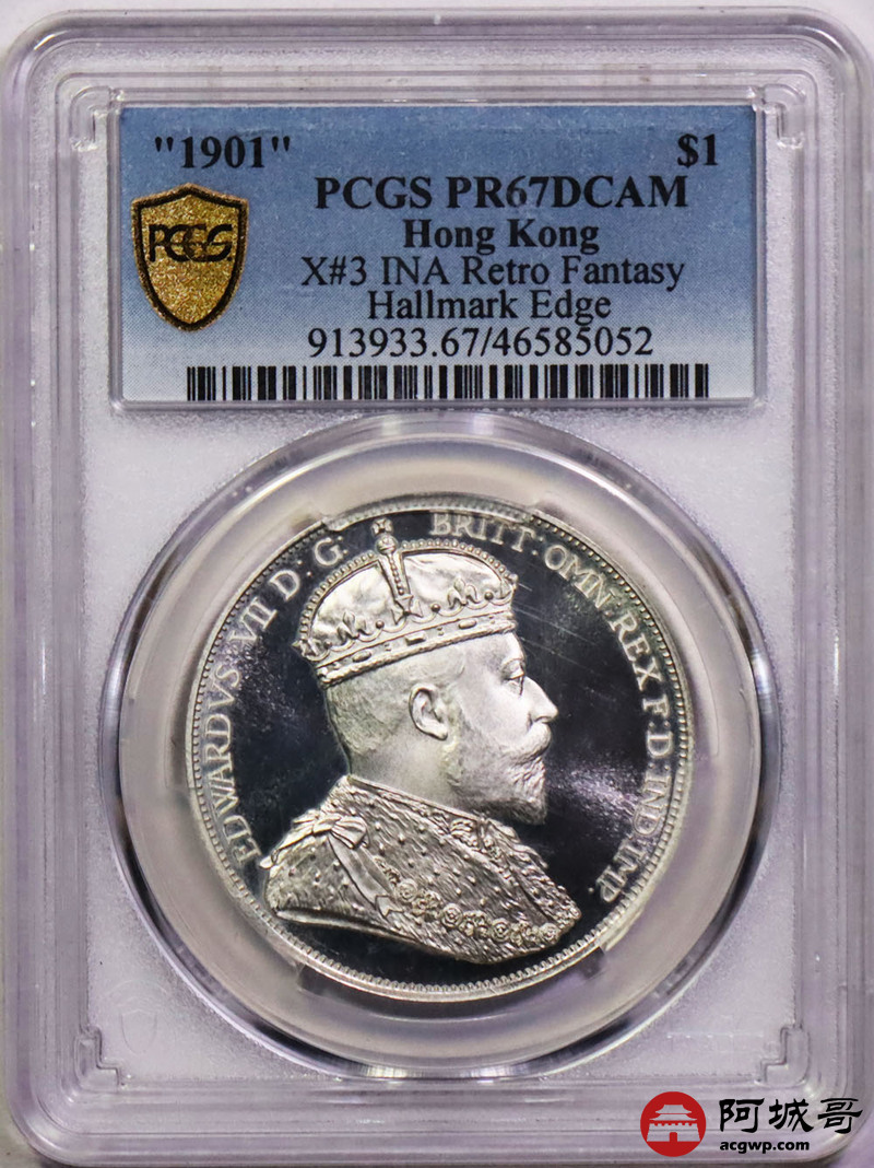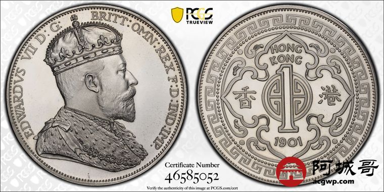 Lot:14 香港1901年爱德华七世一元银币 PCGS PR67DCAM