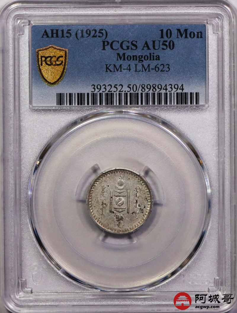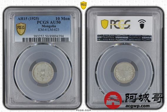 Lot:18 原味 底光 蒙古10蒙戈银币 PCGS AU50