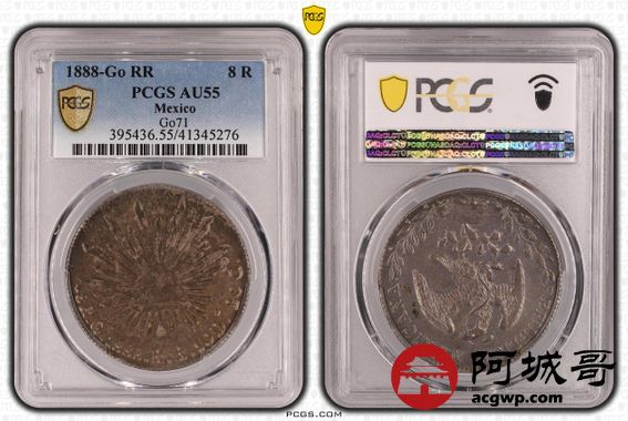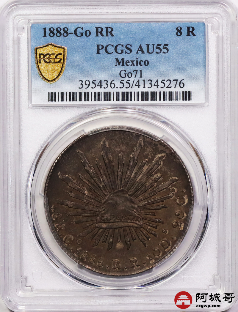 Lot:9 酱彩包浆 1888年墨西哥鹰洋壹圆 PCGS AU55